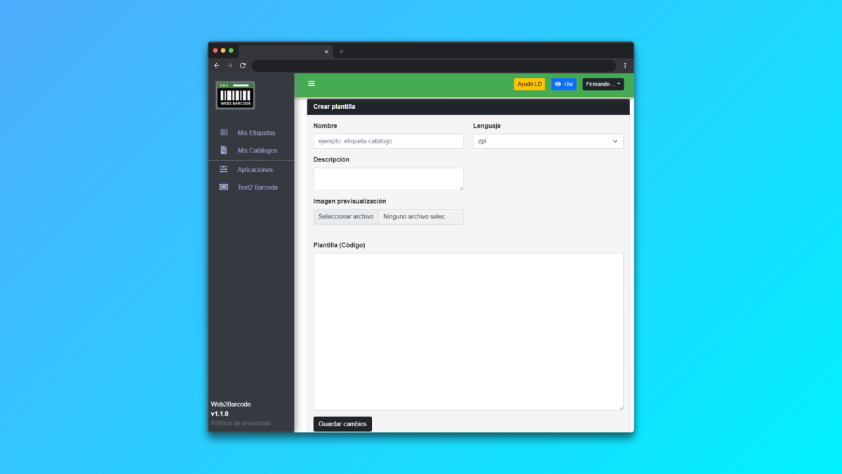 Crear etiquetas y formatos en Web2 Barcode te brinda control total sobre tus diseños y te permite automatizar la impresión de etiquetas personalizadas para tus productos.