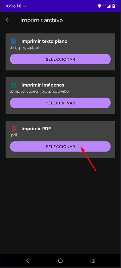 - Seleccionamos la impresora (Ethernet o Bluetooth)