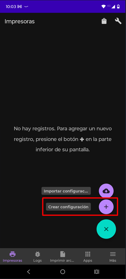 Da clic en el botón + / Crear configuración