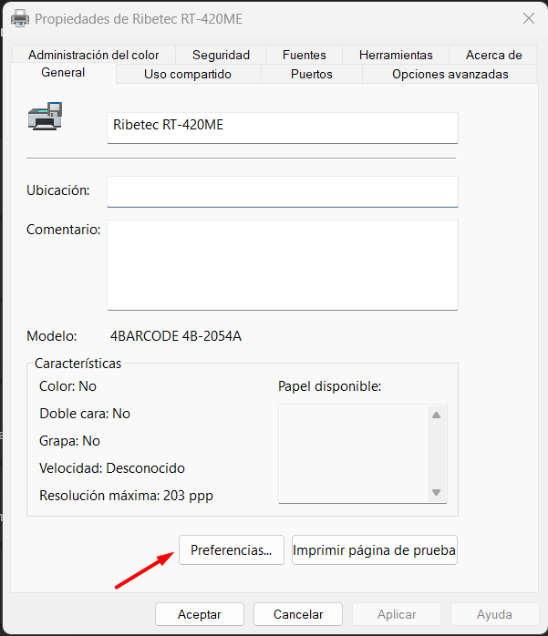 Para hacerlo, haz clic en Preferencias de impresión y registra los formatos correspondientes antes de realizar cualquier prueba de impresión.