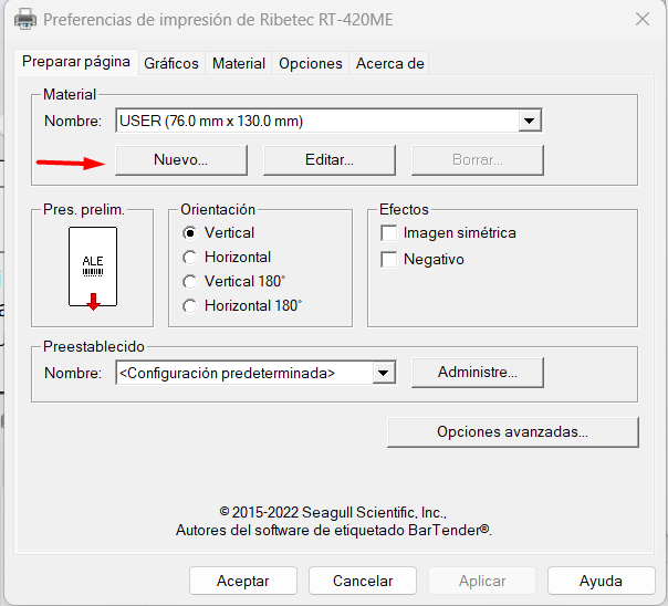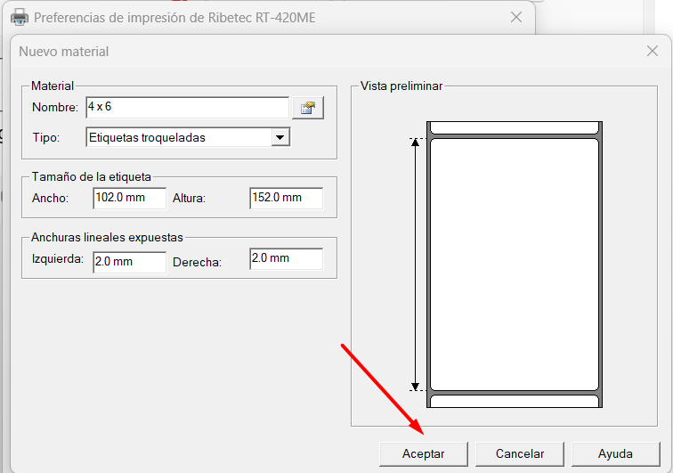 Si se utilizan distintos tamaños de etiquetas, es necesario agregar cada tamaño en el driver de la impresora.