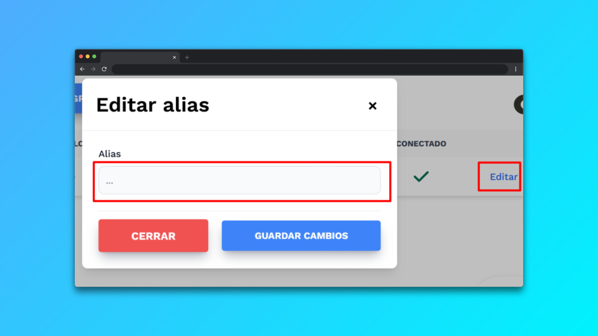 - En el formulario que aparecerá, introduce el nuevo alias o nombre identificativo del dispositivo.