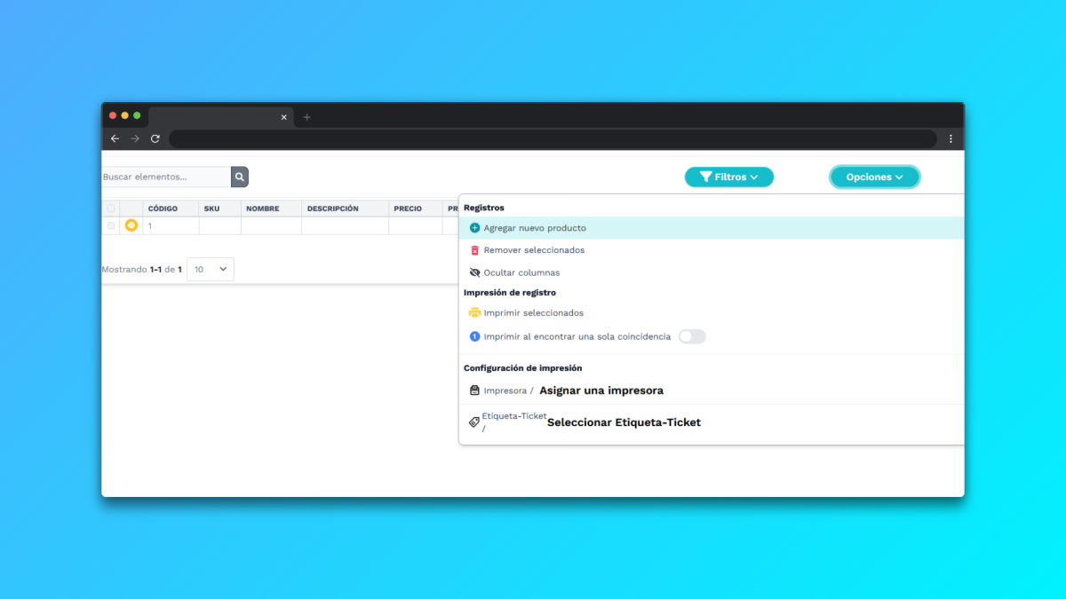 Con solo unos clics, podrás agregar artículos nuevos, sincronizarlos con tus dispositivos y tener tus etiquetas listas para imprimir en segundos.