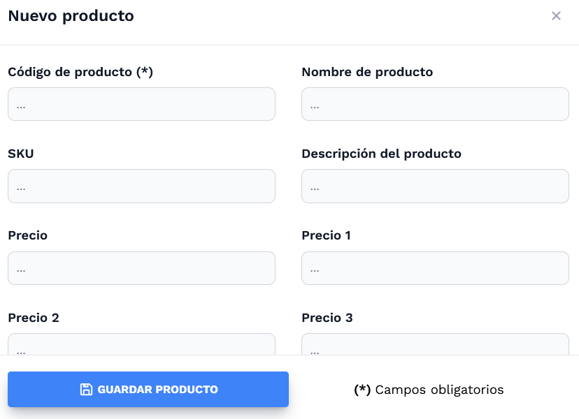 - Código del producto (obligatorio): Identificador único para el artículo.