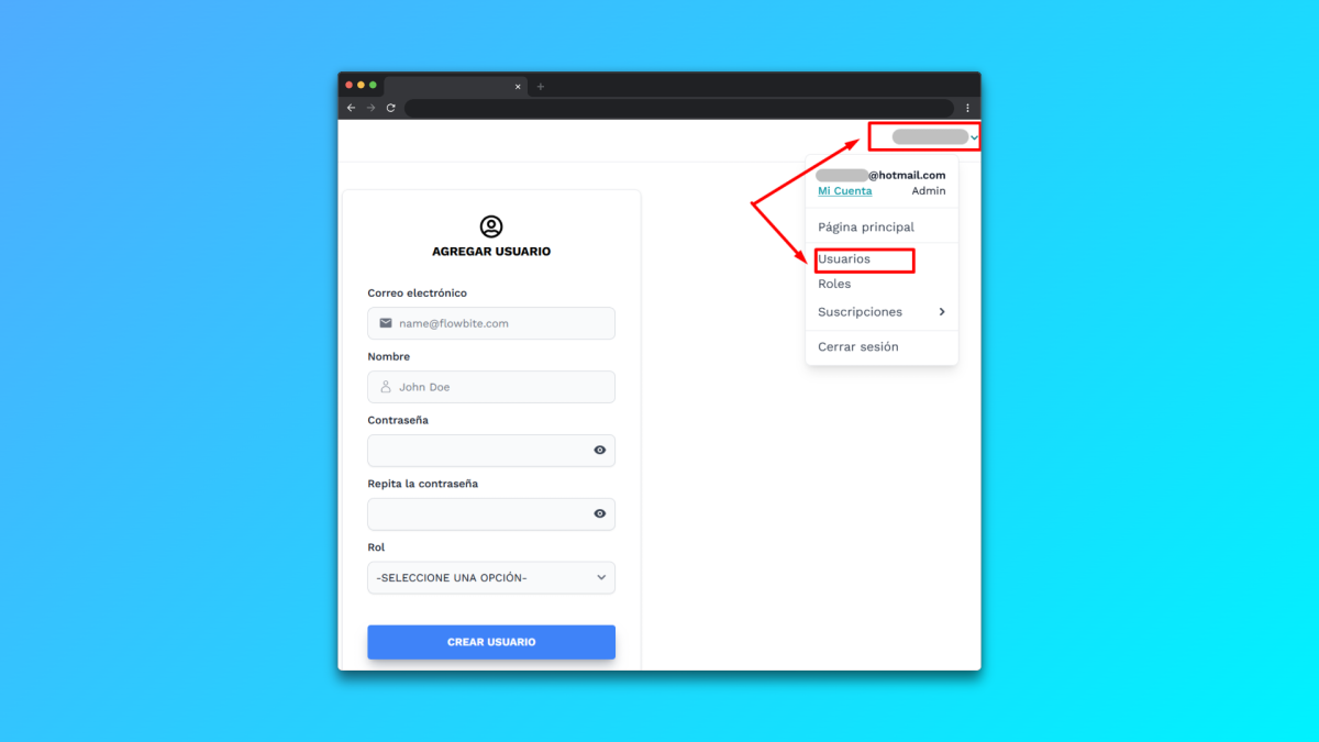 - Email: Dirección de correo electrónico del nuevo usuario.