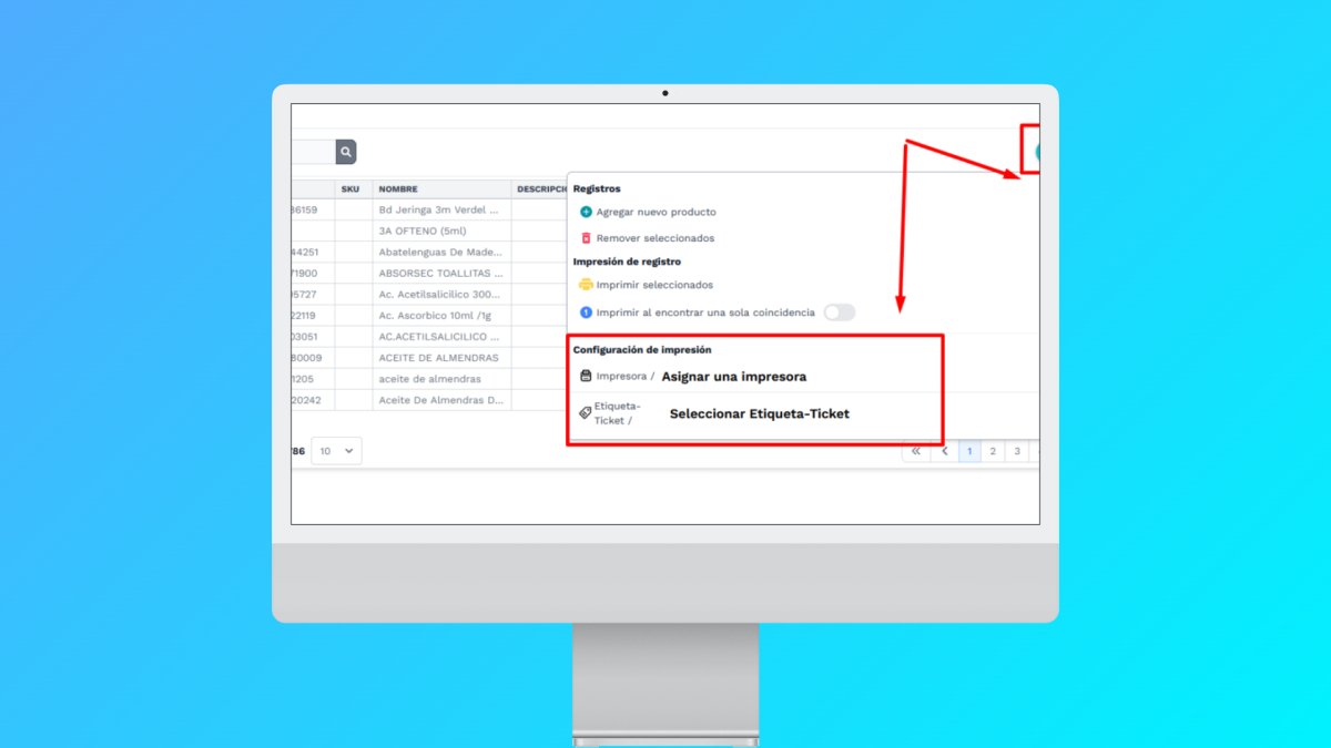 - Impresión individual: Selecciona un producto y envíalo a imprimir de forma inmediata.
