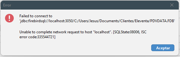 ⚠️Error: Unable to complete network request to host «localhost». [SQLState:08006, ISC error code:335544721]
