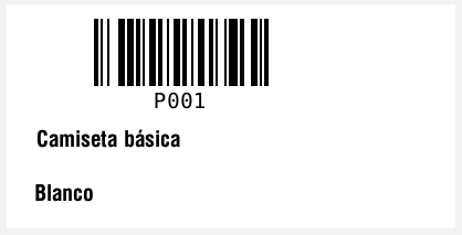 Agregaremos tres elementos: un código de barras para el código del producto, un texto para la descripción y otro texto para el color.
