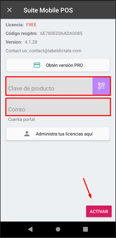 A continuación se proporcionarán las instrucciones para la activación de Suite Mobile POS utilizando un código de suscripción.