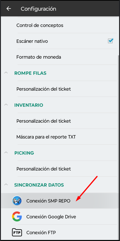 Dar clic en Sincronizar Datos / Conexión SMP REPO
